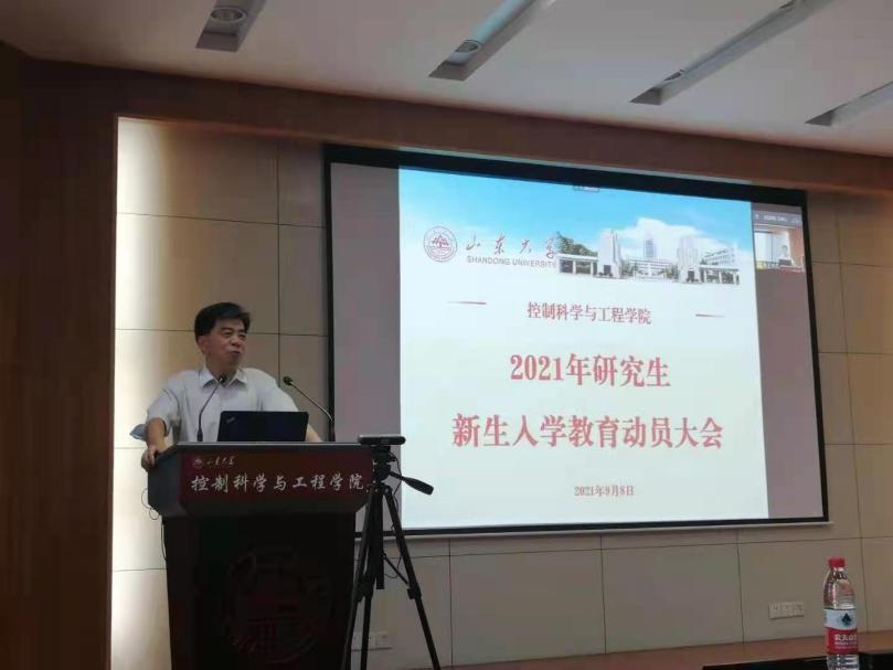 正值建党百年,喜迎建校百廿。山东大学控制科学与工程学院迎来215名硕士新生,55名博士新生,共计270名新同学。为帮助新生坚定理想信念,树立强校兴国远大志向,培养激发专业意识,合理制定学业目标,尽快融入新环境,9月8日山东大学控制科学与工程学院2021级研究生新生入学教育大会在4号楼302会议室成功举行,控制学院党委书记高瑞、常务副院长常发亮、副院长王光臣、党委副书记吴晓晴、研究秘书任玉鑫、辅导员梁瑞涛、王宇凡及全体新生参加会议。此次会议由党委副书记吴晓晴主持,会议以线上线下相结合的方式同步进行。