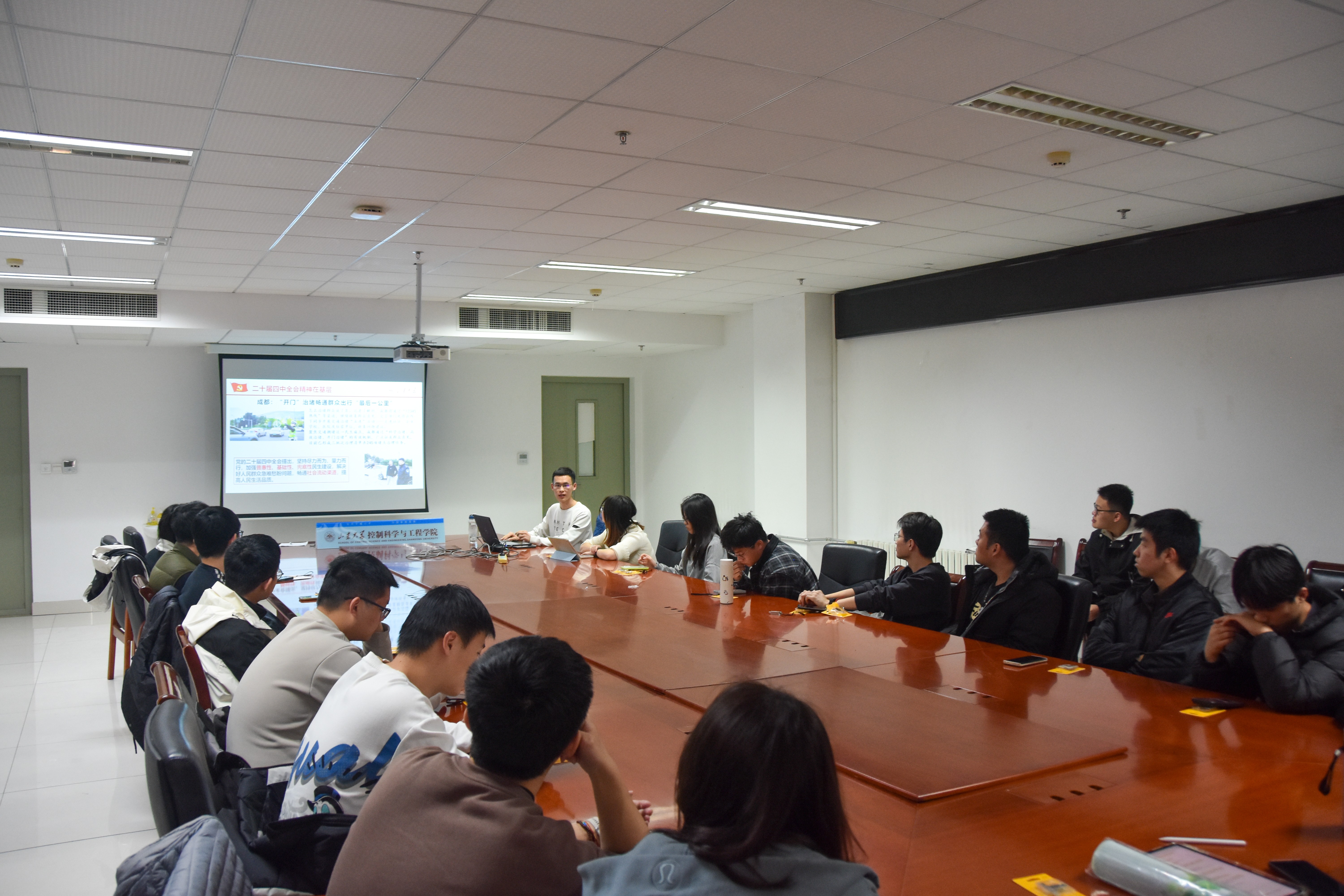 为深入学习贯彻党的二十届四中全会精神,11月29日,控制科学与工程学院硕研2024级4班党支部开展“深学细悟全会精神,青春奋进时代征程”主题党日活动。党支部书记刘广硕主持活动,支部全体党员与积极分子参加活动。